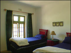 A bedroom with two single beds